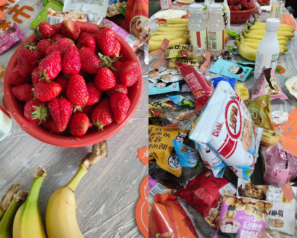 精心布置的场地,整齐摆放的礼物,各种可口的美食,让寿星们对生日会充满了期待。