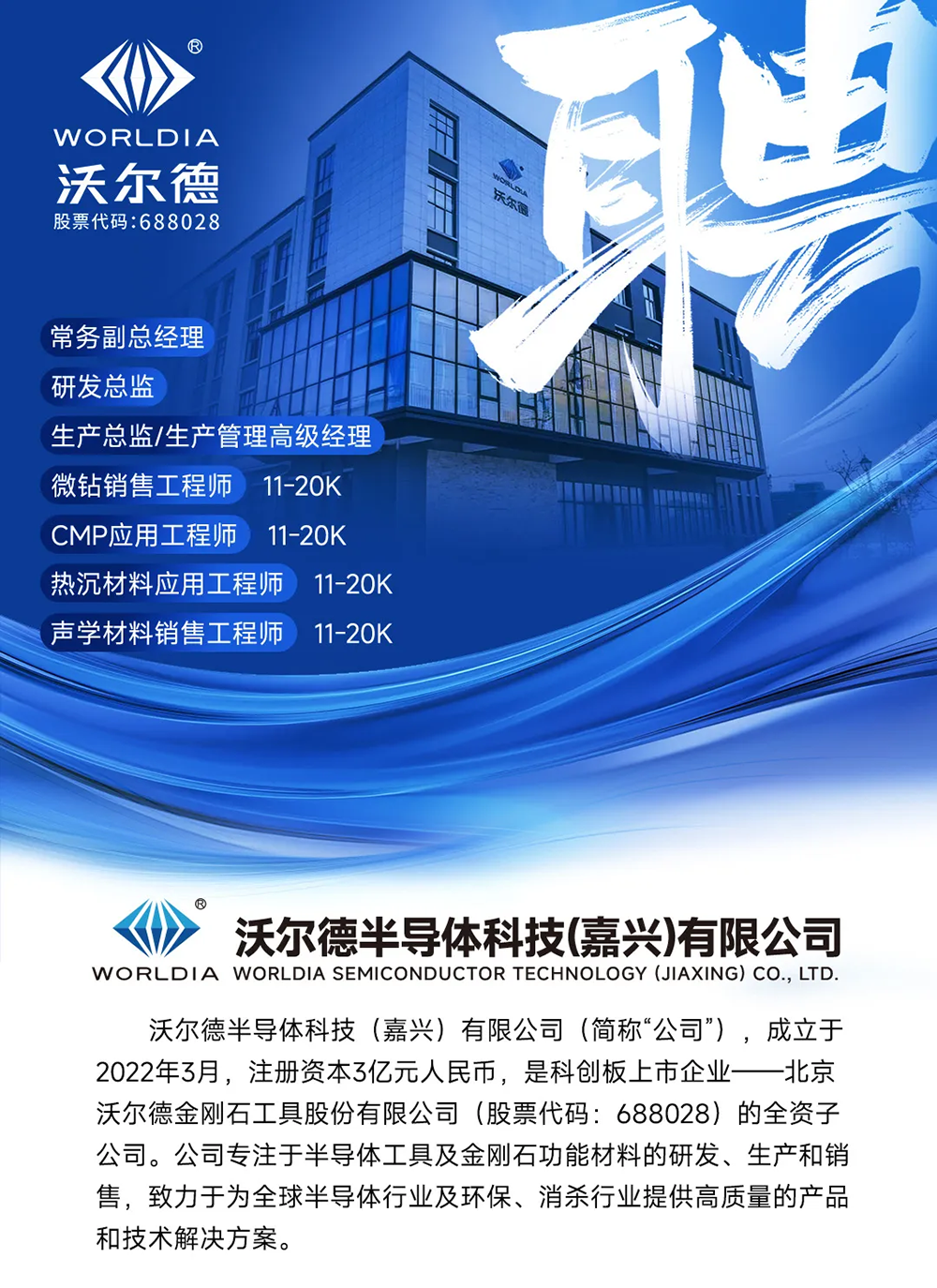 25Q1沃尔德招聘季 | 加入沃尔德半导体,共创“芯”材料,同筑科技强国梦 2025-03-18 10:52:49 北京沃尔德金刚石工具股份有限公司 浏览次数 517 上一条美好三月|沃尔德员工生日会 下一条万般芳华 美好如她 | 沃尔德女神节特别献礼