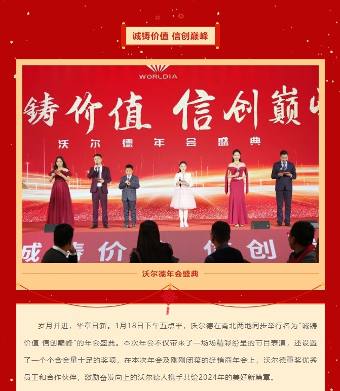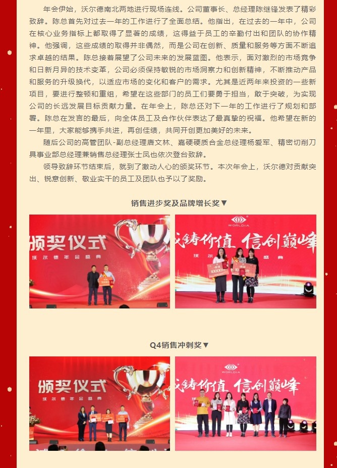 诚铸价值 信创巅峰|沃尔德2023年度总结表彰暨2024年迎新年会圆满举行! 2024-01-23 10:15:21 北京沃尔德金刚石工具股份有限公司 浏览次数 8171 上一条2024新年寄语 | 诚信引领,价值支撑,共赴行业巅峰! 下一条亮相泰国METALEX | 沃尔德刀具助力东南亚智能制造