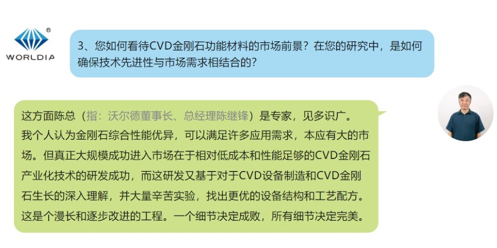 刘尔凯专家研究室设立于沃尔德嘉兴工厂,主要负责特种CVD法设备的研制与持续改进,负责市场所需的CVD金刚石功能材料生长工艺的研究及持续优化。