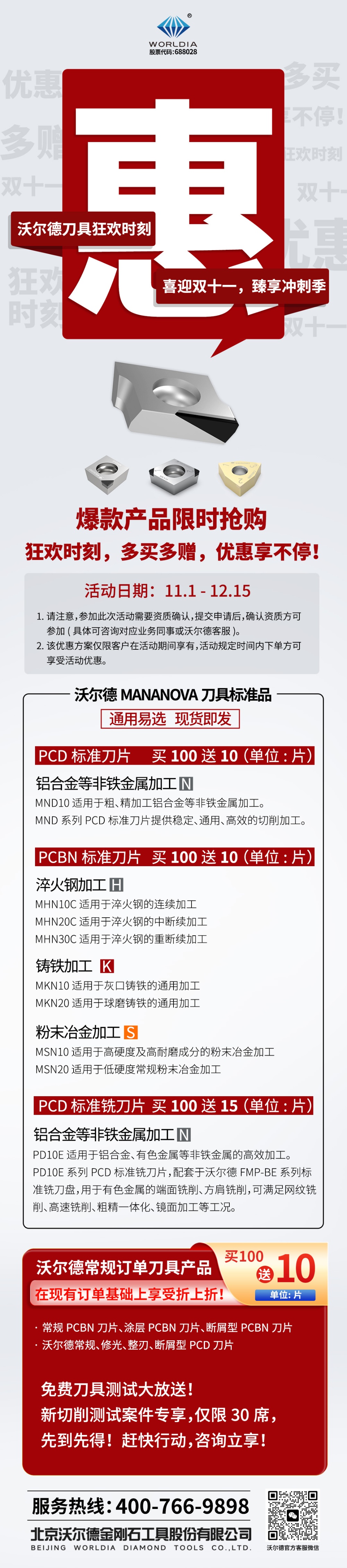 沃尔德刀具狂欢时刻 | 喜迎双十一,臻享冲刺季 2024-10-29 09:43:53 北京沃尔德金刚石工具股份有限公司 浏览次数 3227 上一条JIMTOF2024 | 直击沃尔德展位现场精彩瞬间 下一条遇见美好,共享“食”光——沃尔德开展美食节活动