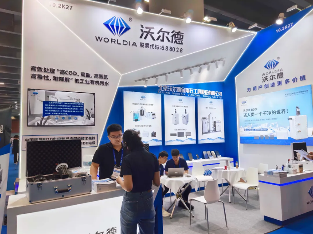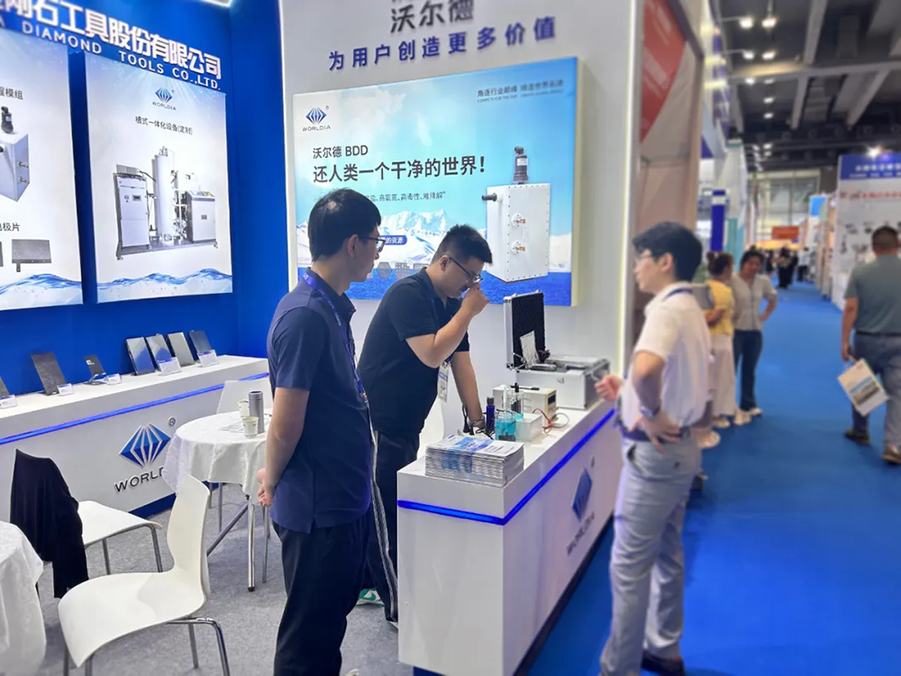 展会期间,通过现场演示BDD烧杯式污水处理实验设备的运行效果,搭配技术人员的专业讲解和答疑解惑,充分展示了沃尔德BDD高效的水处理能力,引得众多参会者的热切关注和讨论。