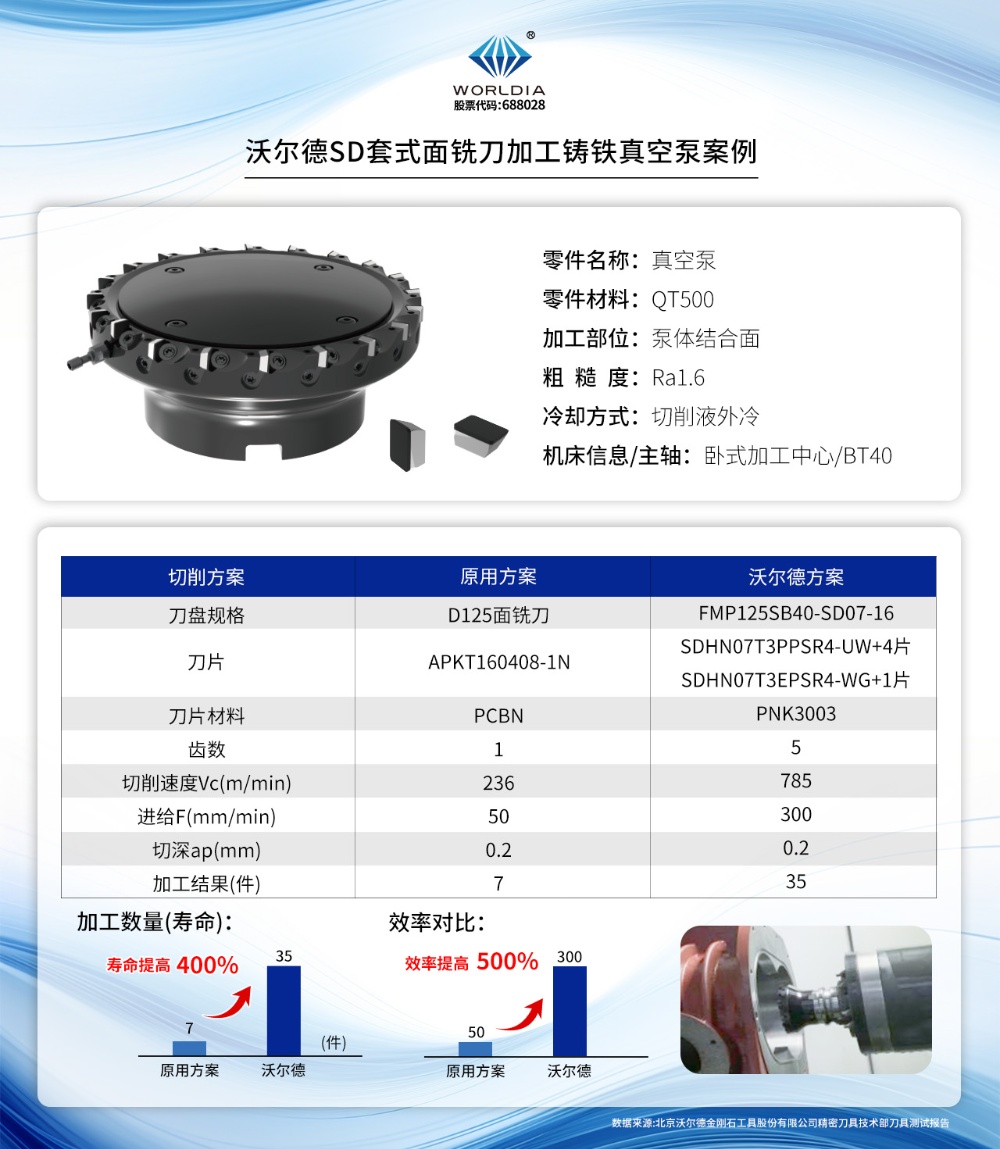 效率与寿命双重飞跃 | 沃尔德SD套式面铣刀加工铸铁真空泵案例