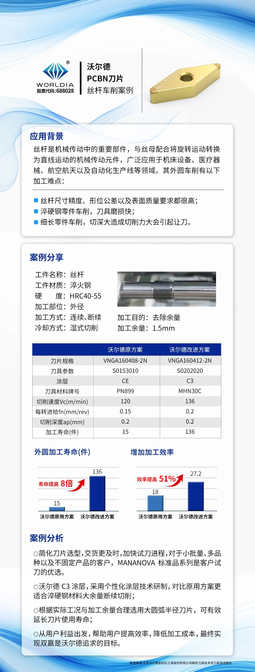 用“硬”实力陪伴用户成长 | 沃尔德PCBN刀片:高效丝杆车削案例解析 2025-04-30 09:25:22 北京沃尔德金刚石工具股份有限公司 浏览次数 705 上一条沃尔德PCBN外圆槽刀应用,外球笼外圆槽加工案例 下一条沃尔德PCBN刀片车削-新能源汽车直驱齿套加工案例