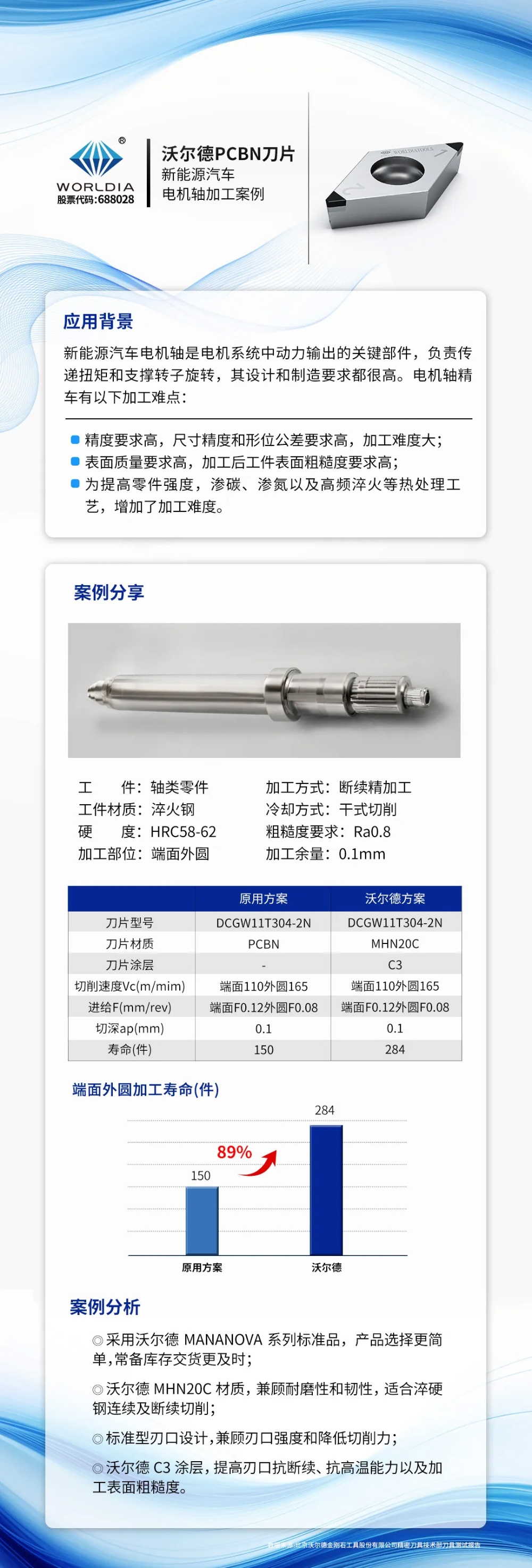 沃尔德PCBN刀片:新能源汽车电机轴加工案例 2025-02-25 09:31:24 北京沃尔德金刚石工具股份有限公司 浏览次数 552 上一条沃尔德PCBN刀片:半轴齿轮加工效率提升25%,寿命飙升160%! 下一条大型铸铁零件精铣难题如何破解?沃尔德FMP-BE铣刀给出答案!