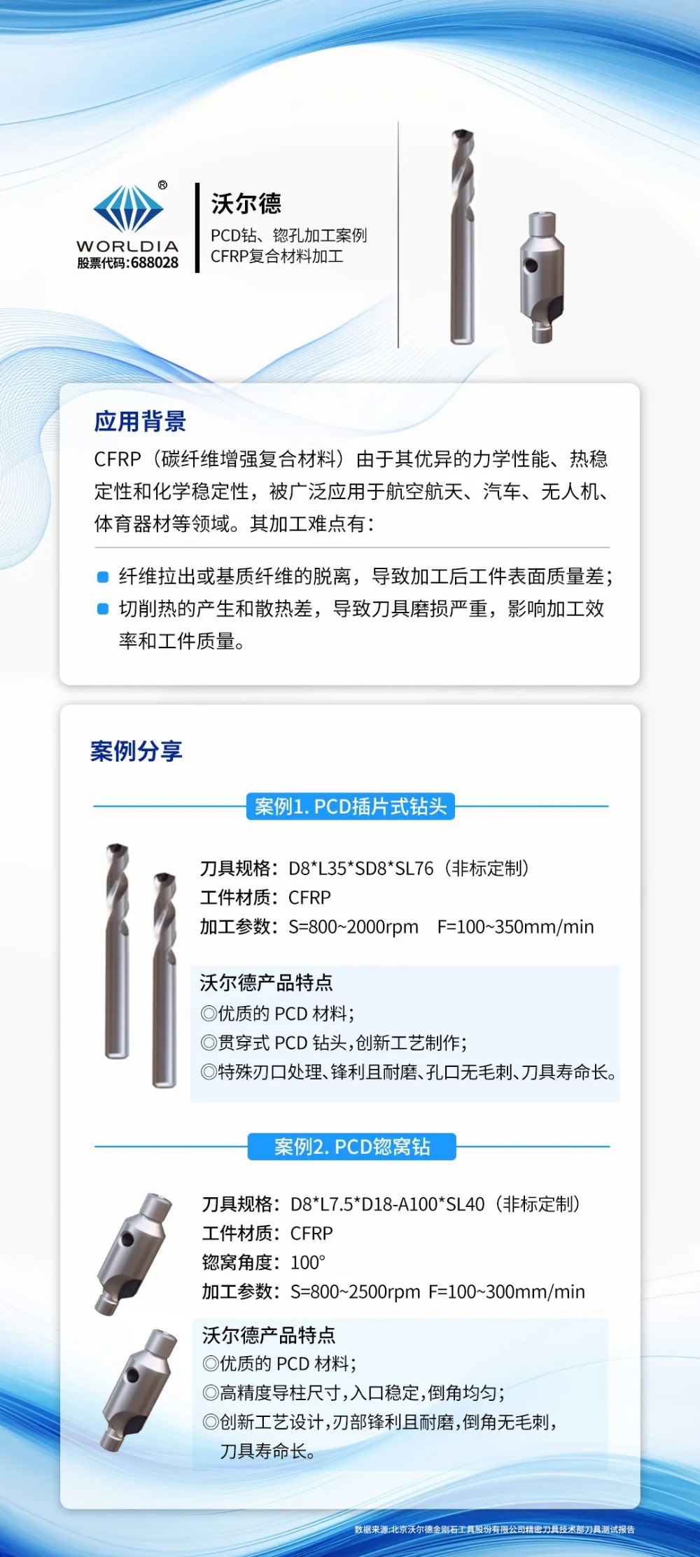 沃尔德PCD钻、锪孔加工案例,CFRP复合材料加工 2025-01-26 09:32:33 北京沃尔德金刚石工具股份有限公司 浏览次数 610 上一条大型铸铁零件精铣难题如何破解?沃尔德FMP-BE铣刀给出答案! 下一条沃尔德PCBN刀片:汽车凸轮轴车削案例