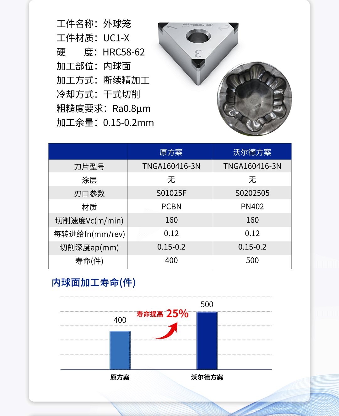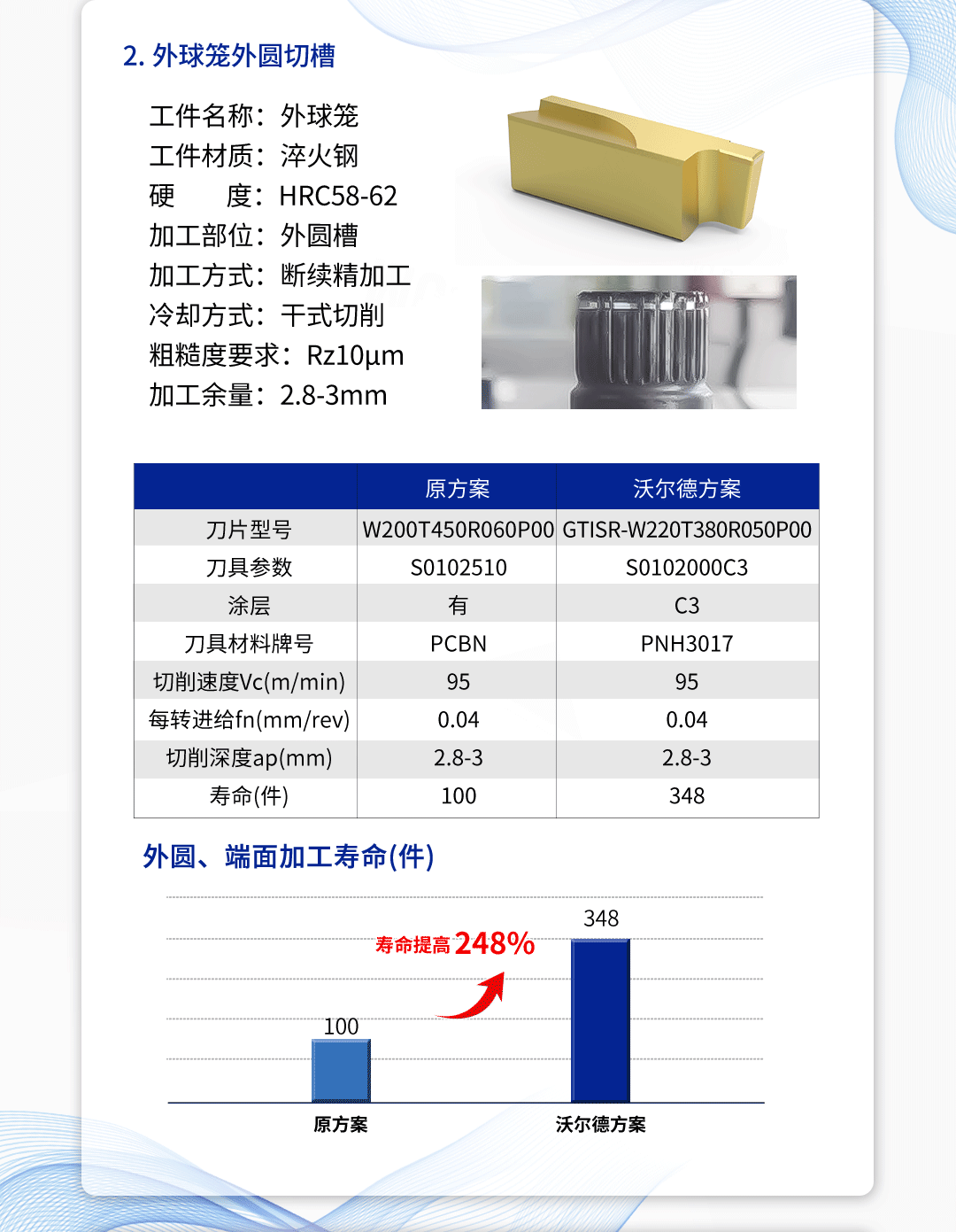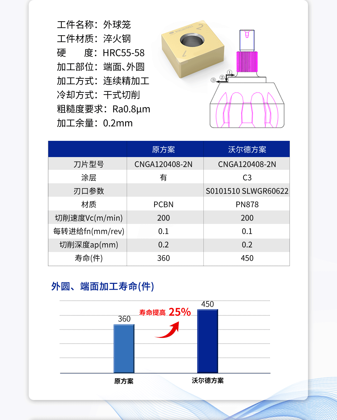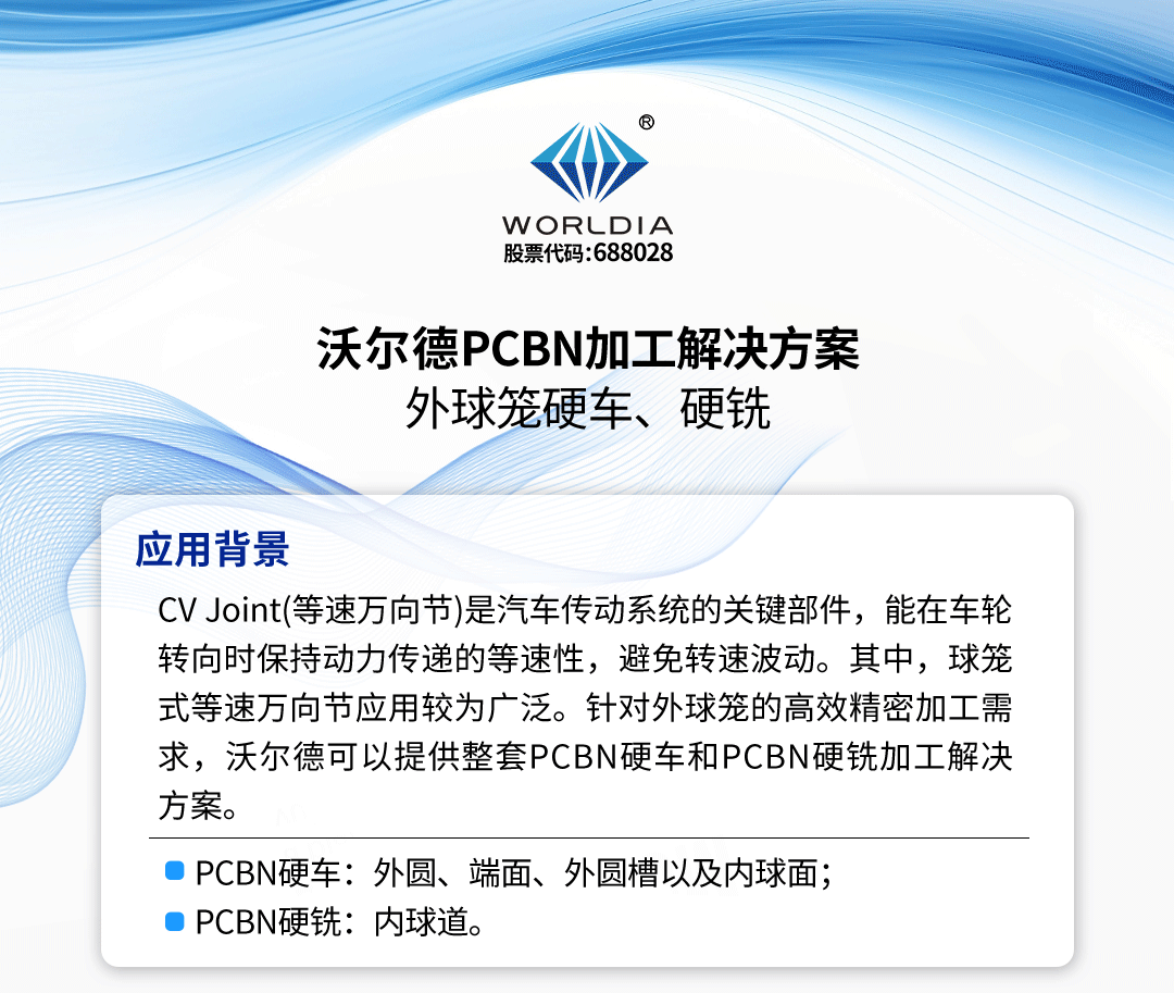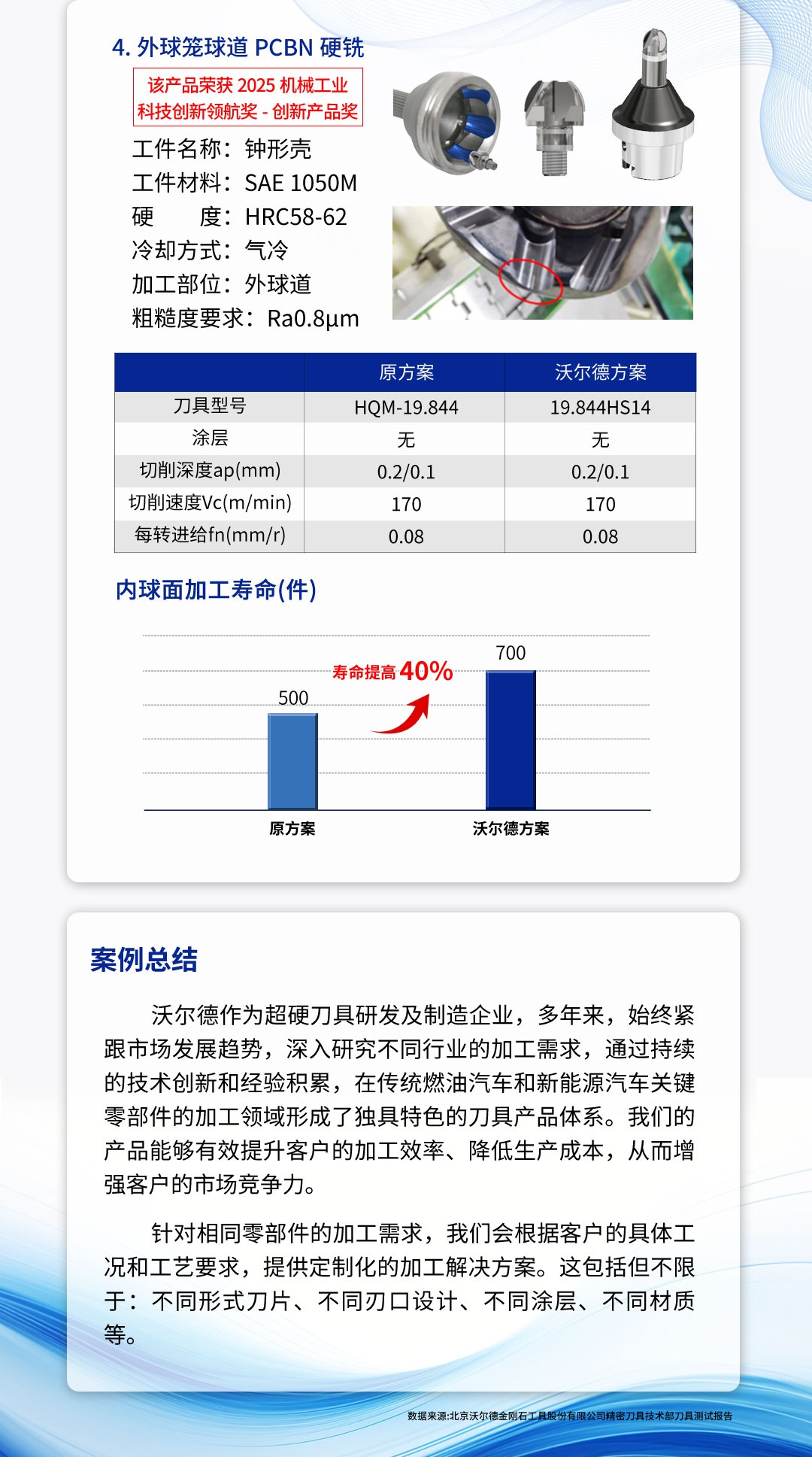 沃尔德PCBN硬车、硬铣加工解决方案:攻克外球笼加工难题 2025-06-09 14:00:33 北京沃尔德金刚石工具股份有限公司 浏览次数 721 上一条沃尔德PCBN刀片,助力大型轴类零件加工 下一条沃尔德定制型PCD立铣刀应用案例-新能源汽车电池仓加工