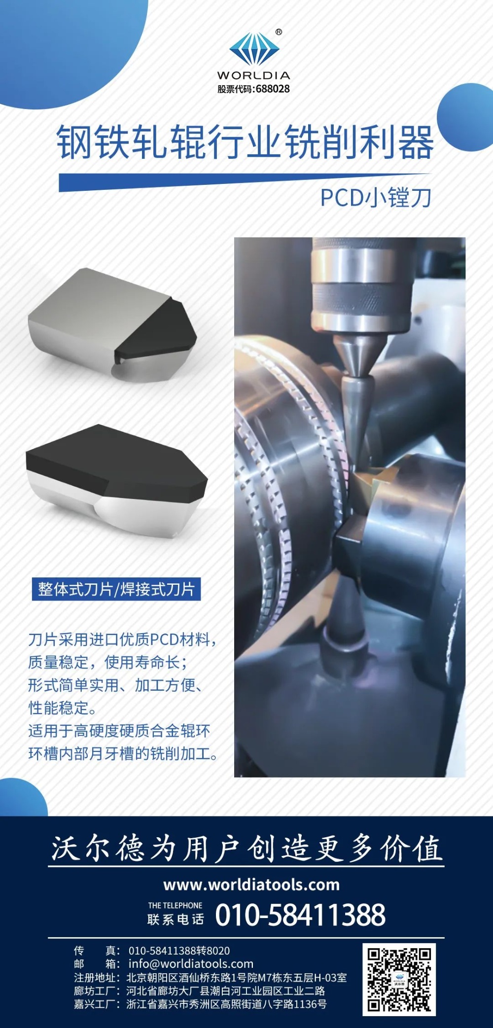 沃尔德PCD小镗刀,刀片采用进口优质PCD材料,质量稳定,使用寿命长;形式简单实用、加工方便、性能稳定。适用于高硬度硬质合金辊环环槽内部月牙槽的铣削加工。